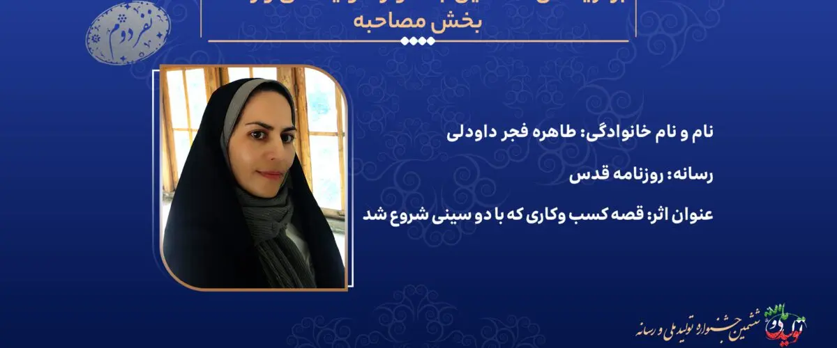 نفر دوم/ «طاهره فجر داودلی» از «روزنامه قدس» برای مصاحبه‌ای با عنوان «قصه کسب وکاری ... ادامه مطلب