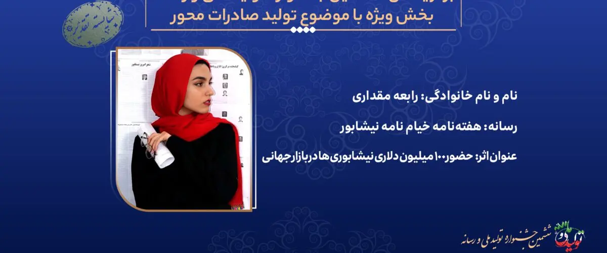 شایسته تقدیر/ «رابعه مقداری» از «هفته‌نامه خیام نامه نیشابور» برای اثری با عنوان «حضور ۱۰۰ ... ادامه مطلب