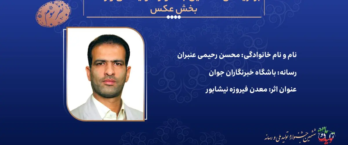 «محسن رحیمی عنبران» از «باشگاه خبرنگاران جوان»Agradدسامبر 7, 2024نفر سوم/ «محسن رحیمی عنبران» از «باشگاه خبرنگاران جوان» برای اثری با عنوان « معدن ... ادامه مطلب