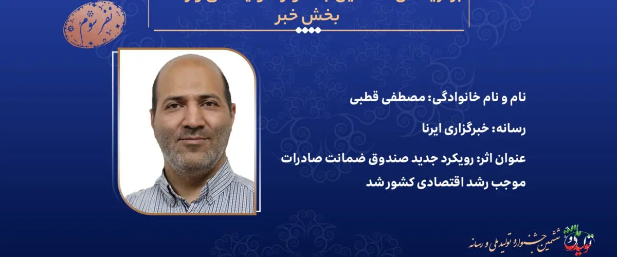 «مصطفی قطبی» از «خبرگزاری ایرنا»Agradدسامبر 7, 2024نفر سوم/ «مصطفی قطبی» از «خبرگزاری ایرنا» برای خبری با عنوان «رویکرد جدید صندوق ضمانت ... ادامه مطلب